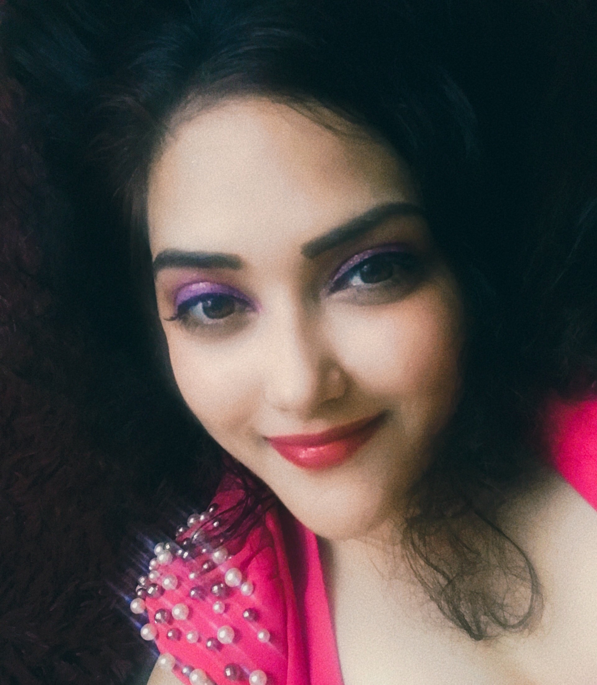 - I am using shimmery and subdued pink eyeshadow all over the eyelids, starting from brow bone extending to lash line. Blend it well with an eyeshadow blending brush.
